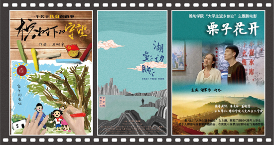 潍坊学院学生孟维一拍摄的《栗子花开》,讲述大学毕业生宋灏回乡创业、种植栗子树的故事;重庆师范大学学生宁傲,在《无约而至》中讲述了新冠肺炎疫情期间,山村女孩白岚上山找网络信号上网课的故事。