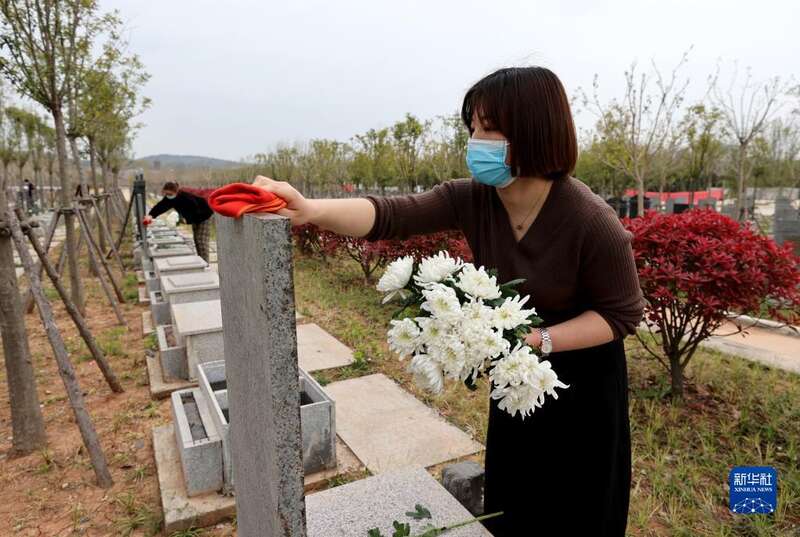 根据疫情防控需要,清明期间,安徽省全椒县公墓、敬思堂等场所暂停现场祭扫活动,当地民政部门组织志愿者通过代祭扫、云祭扫等方式表达对逝者的思念。