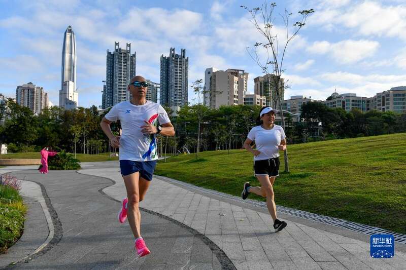 3月30日,人们在深圳市福田区皇岗公园晨练。