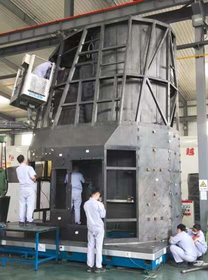 2021年王维和团队成员在望远镜结构组装现场。(受访者供图)