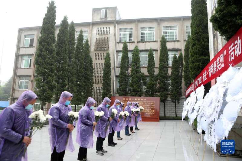 4月1日,重庆市永川区红炉镇志愿者在新店烈士陵园开展追思英烈活动。