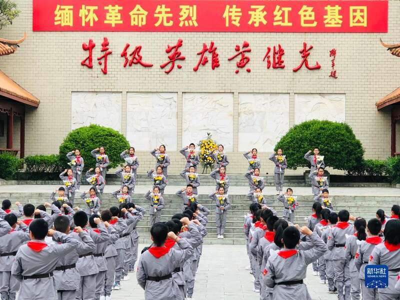 3月29日,四川省中江县黄继光红军小学学生缅怀烈士。