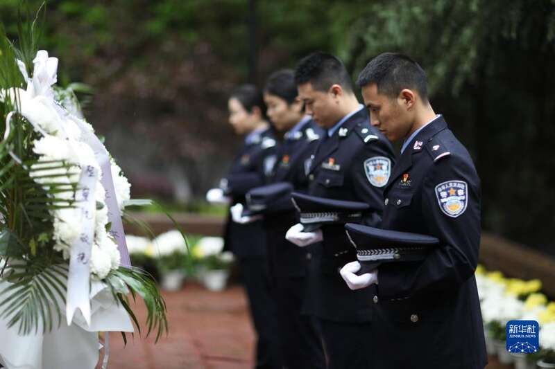 4月1日,在贵州省赤水市红军烈士陵园,民警祭奠红军烈士。