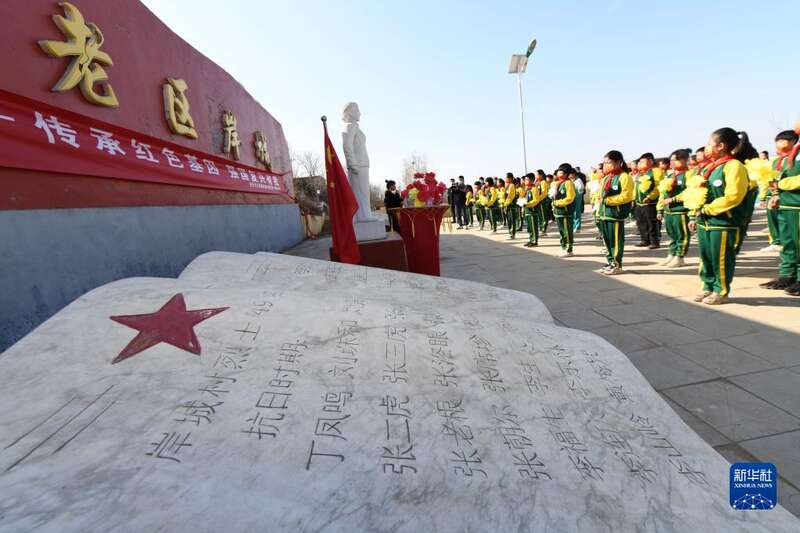 4月1日,石家庄新乐市岸城村小学少先队员参加缅怀英烈活动。