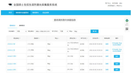 3、调剂服务系统开通后,调剂意向采集服务系统的查询调剂意向余额信息和填写调剂意向功能将关闭。考生可以在调剂服务系统查询余额信息。