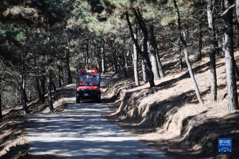4月1日,承德避暑山庄消防救援站消防员驾驶山地越野车进行防火巡查。