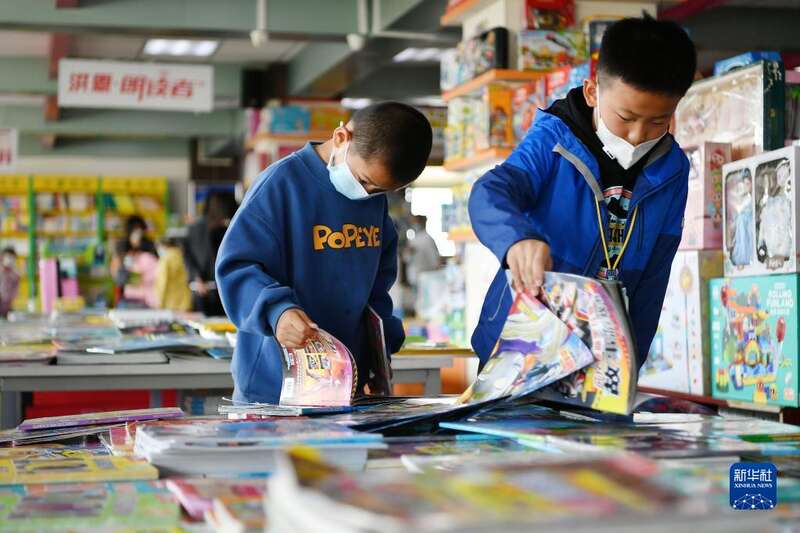 4月4日,小读者在银川市鼓楼新华书店选购书籍。