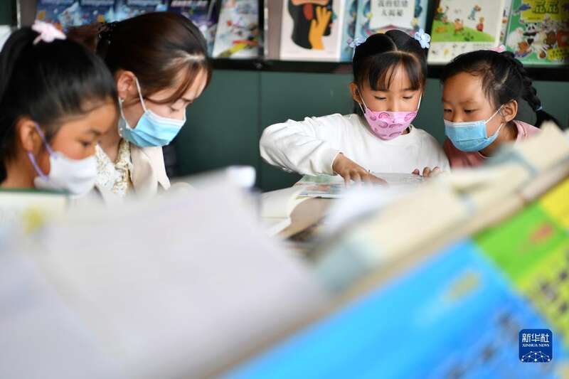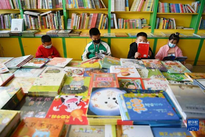 4月4日,小读者在银川市鼓楼新华书店看书。