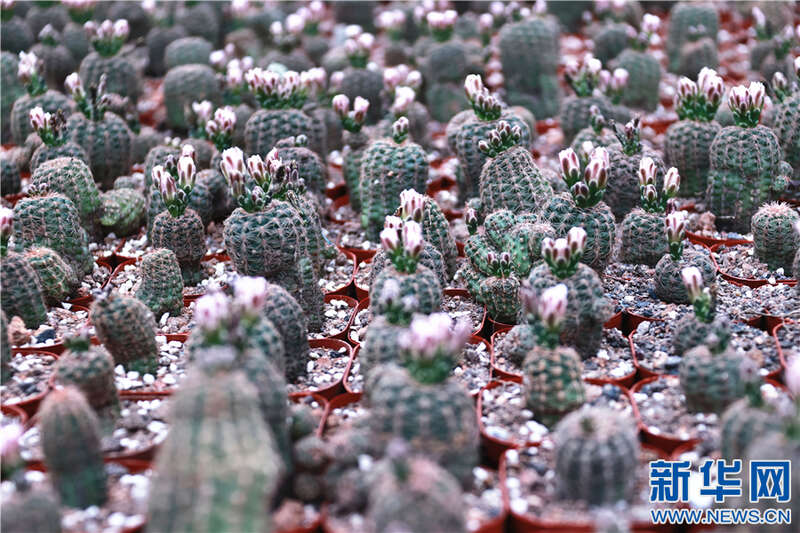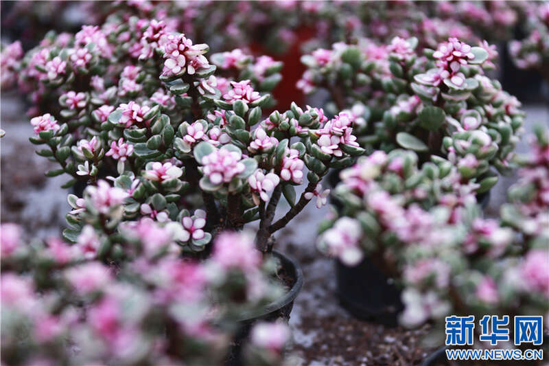江西省崇义县左溪村多肉种植基地的部分植物。新华网发 严毅君 摄