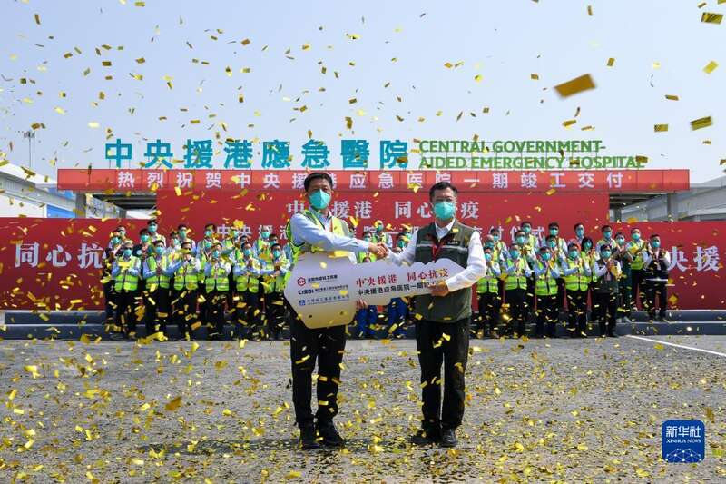 4月7日,中央援港应急医院项目一期竣工交付仪式举行。