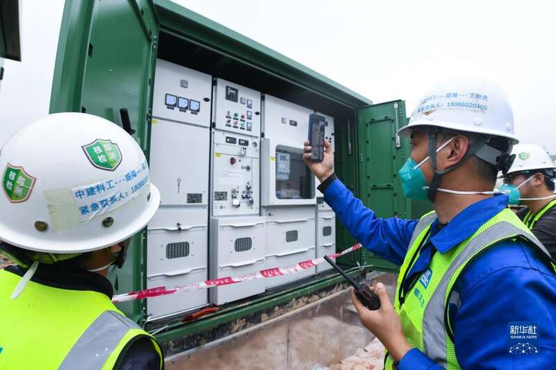 3月29日,工作人员与港方视频连线,共同确认送电成功。中央援港应急医院项目一期进入联调联试阶段。
