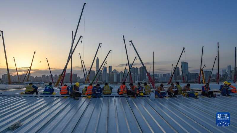 3月6日清晨,第一批200名建设者从临时搭建的钢栈桥上跨过深圳河,奔赴落马洲,中央援港应急医院正式开始大规模施工建设。