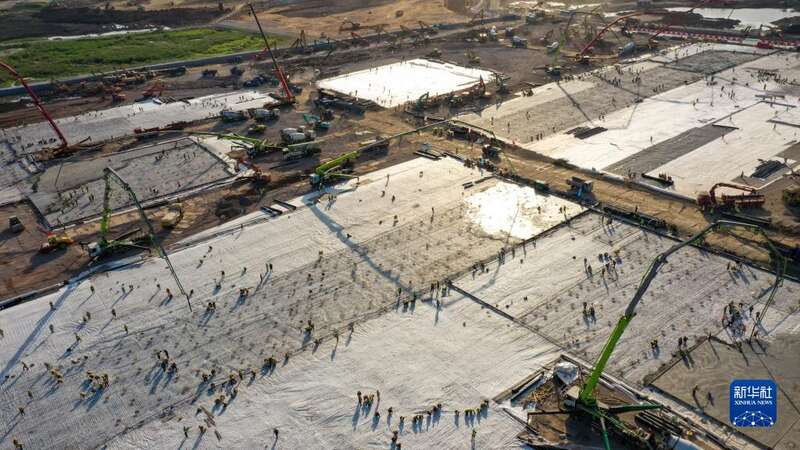 3月7日,第一条道路开始进行浇筑(无人机照片)。