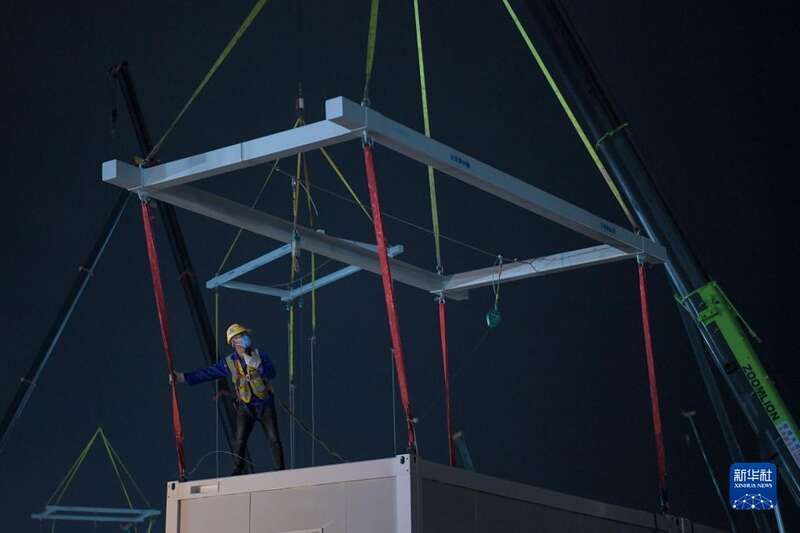 3月9日,首个集成式箱体开始吊装。