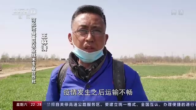 沧县富民农业技术专业合作社 王林清:在疫情发生之后运输不畅,小麦到这个季节应该准时追施尿素追施肥了,但肥料涨价涨得太厉害了,今年同期和去年比较一吨得超个三四百块钱,所以没有办法,合作社组织会员给小麦喷施叶面肥。