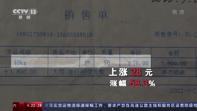 受国内外多种因素影响,今年国内化肥价格普遍上涨。根据沧县农户提供的单据,一款40公斤一袋的氮肥,从去年3月的48元涨到今年3月的76元,上涨28元,涨幅高达58.3%。价格高涨再加上疫情下运输困难,导致一些农户买不到化肥。
