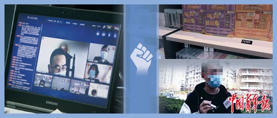 左:北京市东城区人民法院线上开庭审理一起贩卖合成大麻素类(“上头”电子烟)毒品案。 北京市东城区人民法院供图