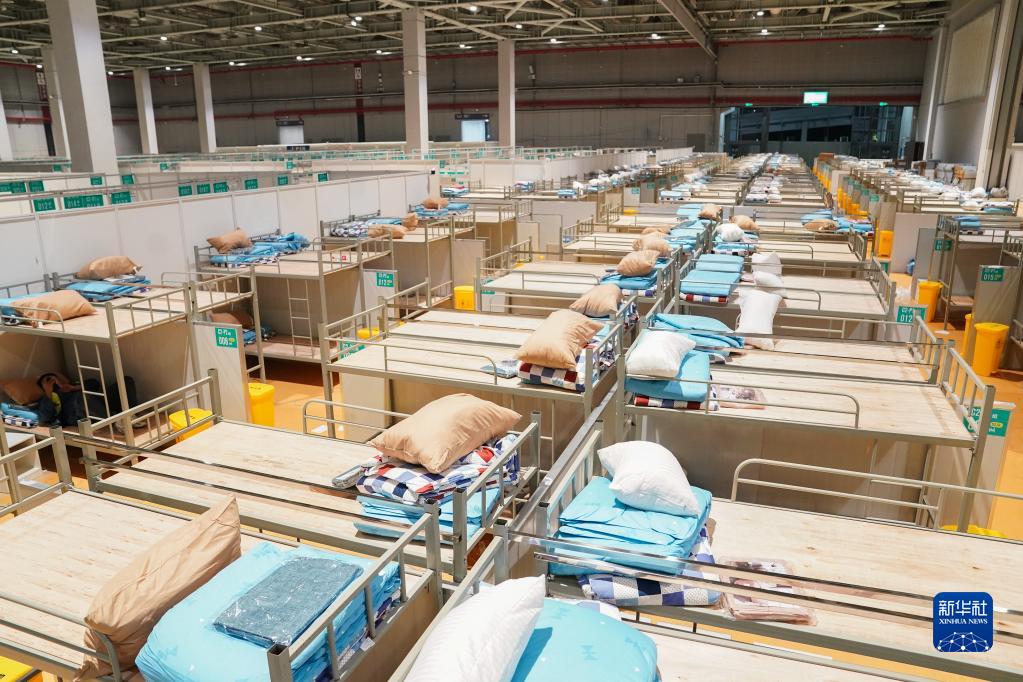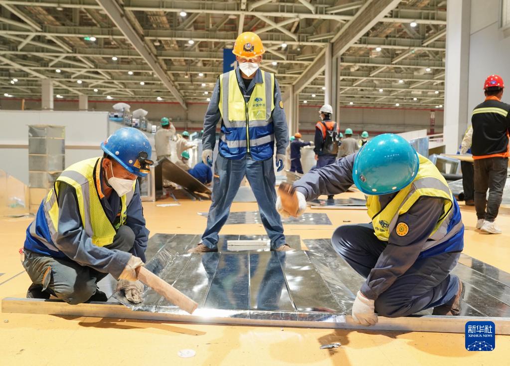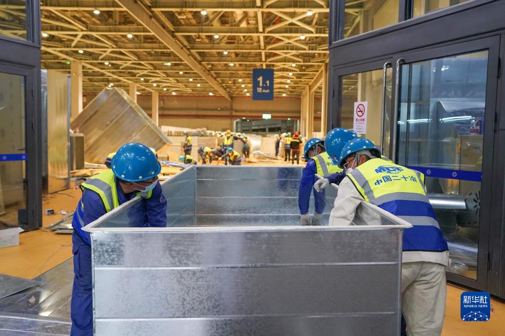 月11日凌晨,在国家会展中心(上海)方舱医院中尚未交付的部分区域,工人正加紧推进建设。“四叶草”正与时间赛跑,争分夺秒改建成上海重要的方舱医院。9日,国家会展中心(上海)3号馆改建工程完工交付,医疗队第一时间入驻并接收患者。
