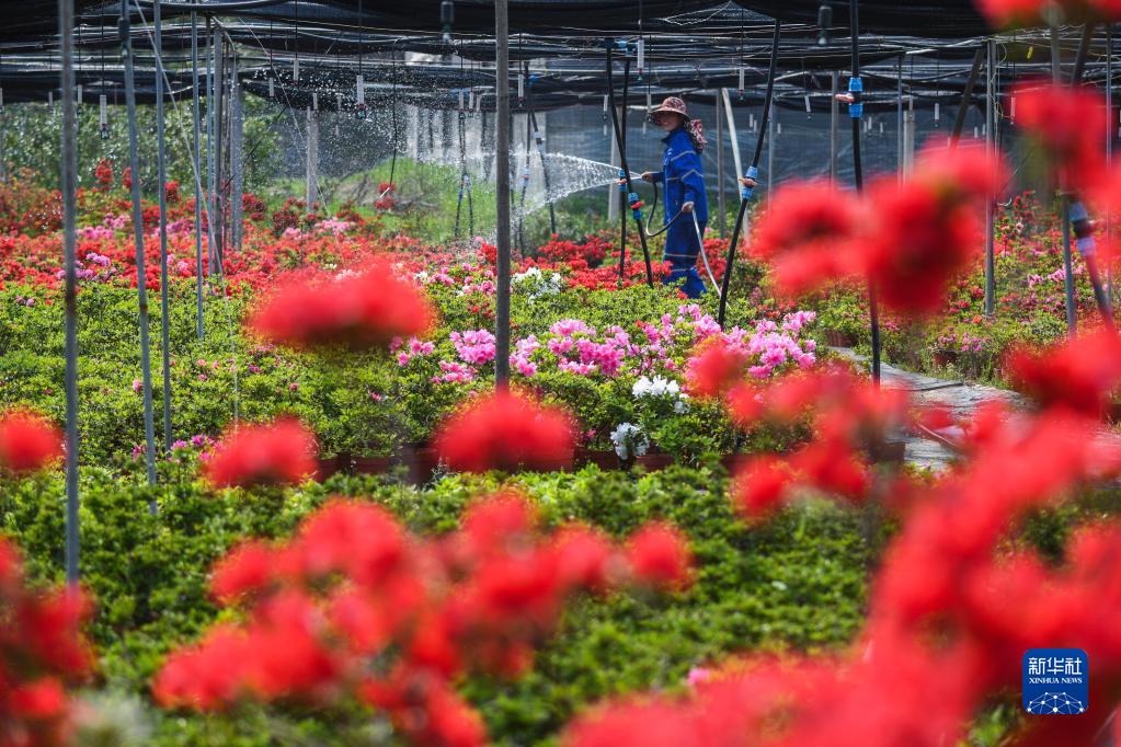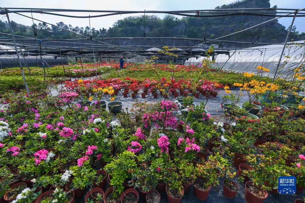 近日,浙江省湖州市吴兴区东林镇三合村由废弃矿山改造的花卉种植园里鲜花盛开,吸引游客前来观赏购买。该废弃矿山经过覆绿整治,被打造成乡村特色花卉种植园,目前有村民承包户20多户,种植有杜鹃、兰花、罗汉松等各类花卉、苗木数十种,推动了乡村旅游的发展,带动了周边农民就业。