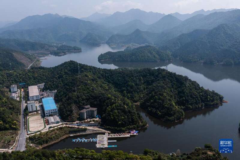 这是4月21日在淳安经济开发区拍摄的一个水上训练码头(无人机照片)。