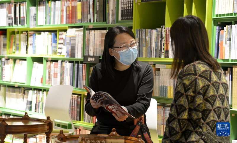 4月21日,读者在宛平古城内的和平书店选购图书。