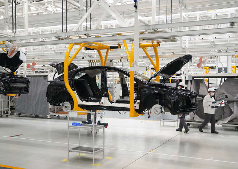 4月22日,在一汽集团红旗繁荣工厂,工人在进行生产作业。新华社发