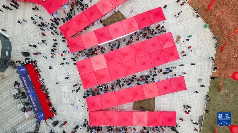 这是3月10日在长沙望城经开区铜官工业园拍摄的招聘活动现场(无人机照片)。新华社记者 陈泽国 摄