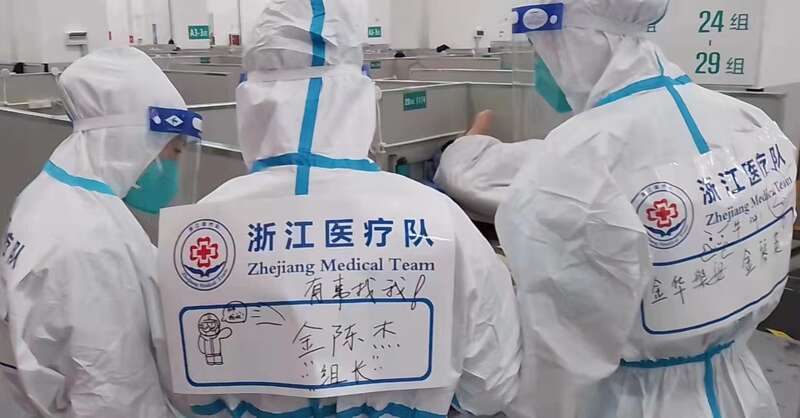 金陈杰出生于1995年,来自金华市中心医院重症医学科,是一名党员,也是医院的一名青年团干部。他告诉记者,医疗队在选派援沪成员时,首先考虑医务人员的政治品德和职业素养,并且优先选择重症医学科、呼吸内科等相关学科内服务态度好、技术过硬的业务骨干。他说:“方舱医院工作强度还是挺大的,因此也会考虑男护士优先,但男护士在各家医院里仍然是少数,我们医院这次一共来了35位援沪同事,其中护士有20人,男护士有4人,男护都来自ICU(重症加强护理病房)。平时工作中,男女护士负责同样的工作,只是搬重物时男护士会主动承担。”