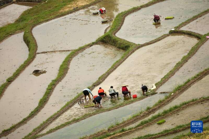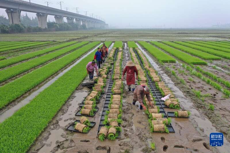 谷雨时节,大地生机盎然,各地农民抢抓农时,及时开展育苗、插秧等工作,宛如在田间地头“织锦”。