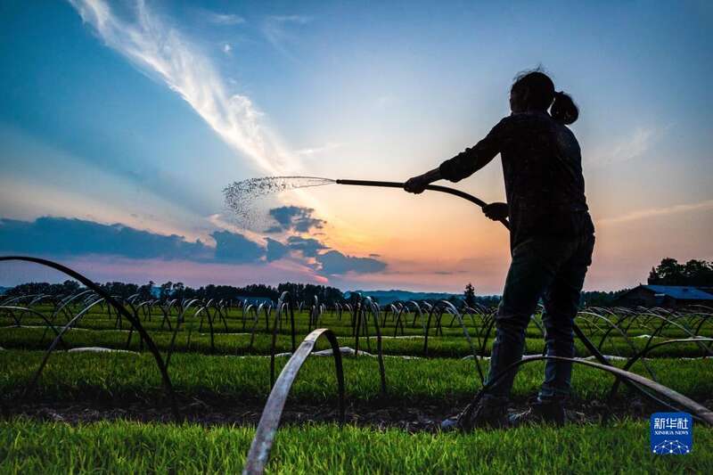 4月23日,重庆市南川区石溪镇南茶村村民在给秧田浇水。