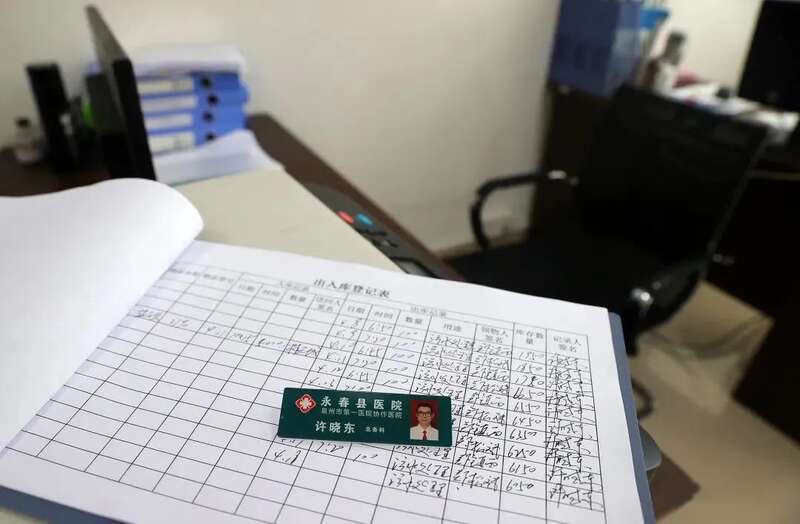 在许晓东的办公桌上,一份出入库登记表永远停留在18日。(永春县委宣传部供图)