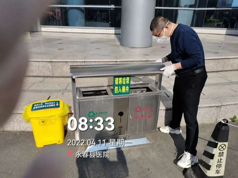 4月11日,许晓东在医院进行后勤保障工作。(永春县委宣传部供图)