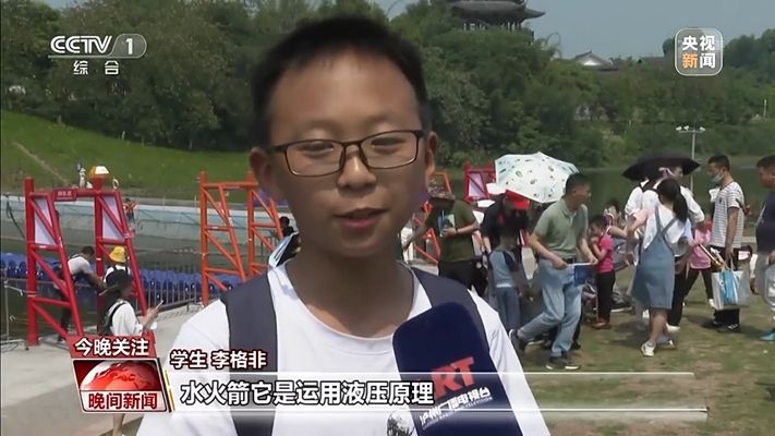 学生 李格非:因为我本来就是一个很喜欢科学的人,水火箭是运用液压原理,还可以告诉我们小朋友们很多物理知识 。