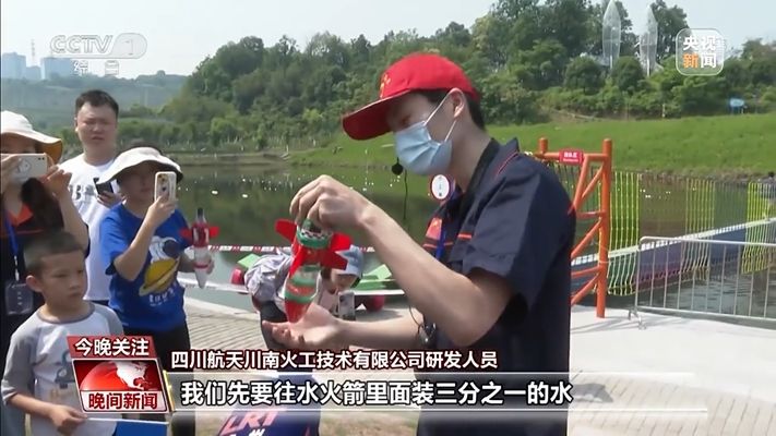 四川航天川南火工技术有限公司研发人员:我们先要往水火箭里面装三分之一的水,其次,我们先往里面注入气体,使里面的压强要远远大于我们外部的气压。