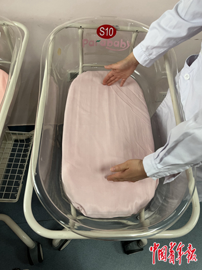 东城区妇幼保健院病房里为新生儿准备的婴儿车。郭玉洁/摄