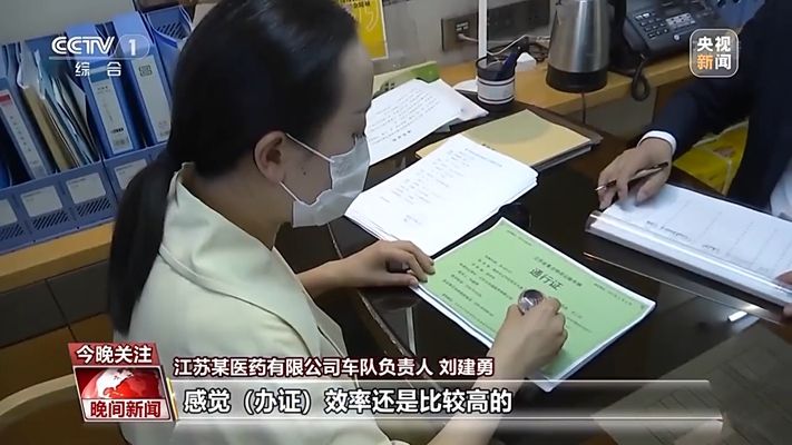 江苏某医药有限公司车队负责人 刘建勇:因为我们这块儿主要做的是药品和防疫物资的配送,所以我们到每个城市的话,都是医疗机构给我们报的计划,所以我们必须要第一时间运送到那边去。感觉(办证)效率还是比较高的,我们从准备到现在的话就两天时间。