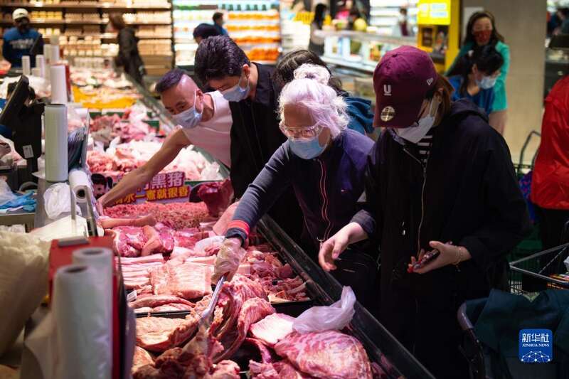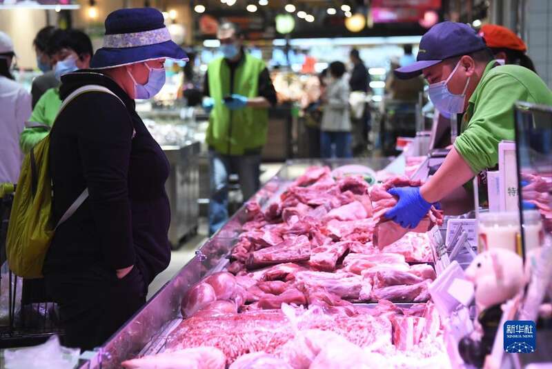 4月26日,市民在位于北京市海淀区的超市发双榆树店选购鲜肉。