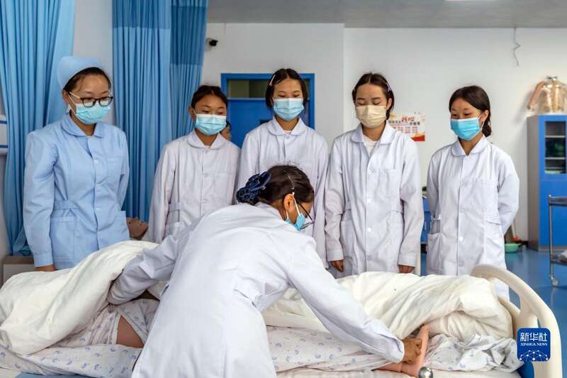 4月27日,学生在贵州省黔西市中等职业学校进行中医护理技能实训。