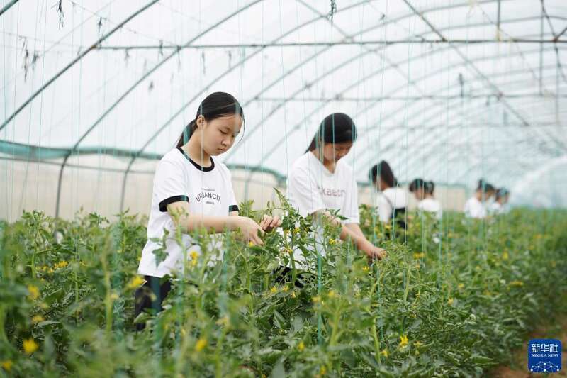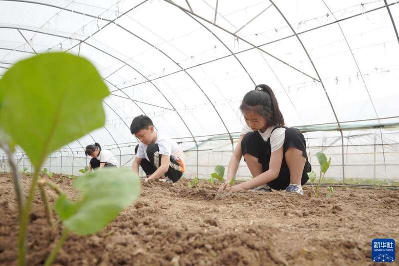 当日,河北省邢台市内丘县韩庄小学组织学生来到蔬菜基地,开展劳动教育实践活动。学生在农民的指导下学习栽种秧苗、管护蔬菜,感受劳动的快乐。