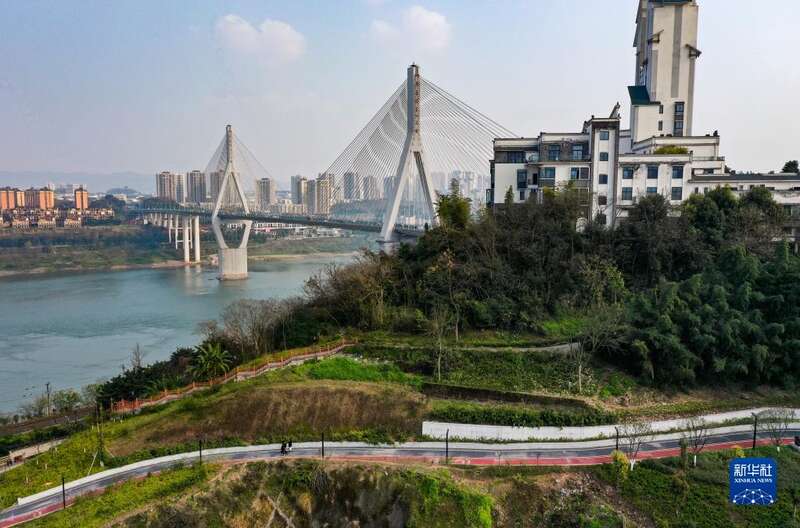 这是2月15日拍摄的重庆市大渡口区重钢崖线山城步道一带景象(无人机照片)。