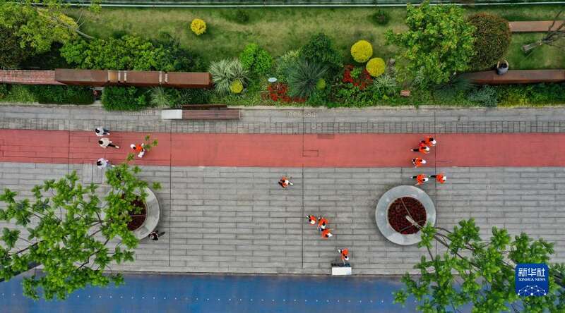 这是4月29日拍摄的重庆市江北区北滨路漫行步道(无人机照片)。