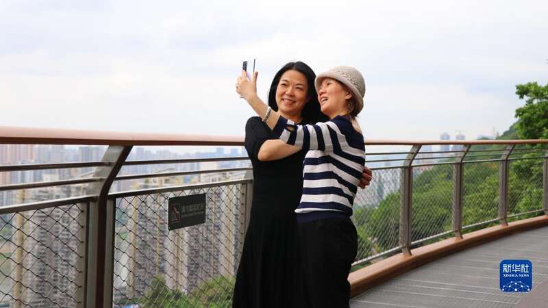 4月28日,游客在重庆半山崖线步道游览、留影。