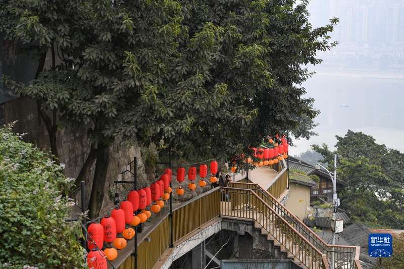 游客在重庆市渝中区山城巷一带的山城步道游览(2月26日摄)。