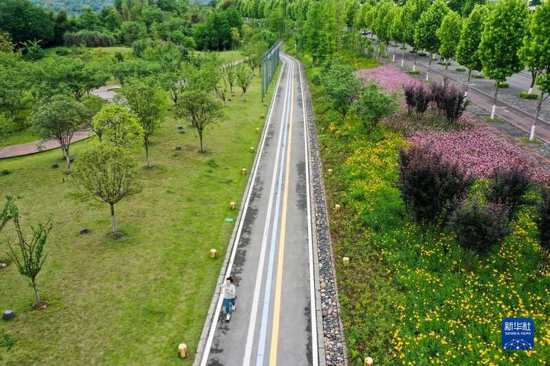 这是4月28日拍摄的重庆市两江新区礼嘉山城步道景象(无人机照片)。