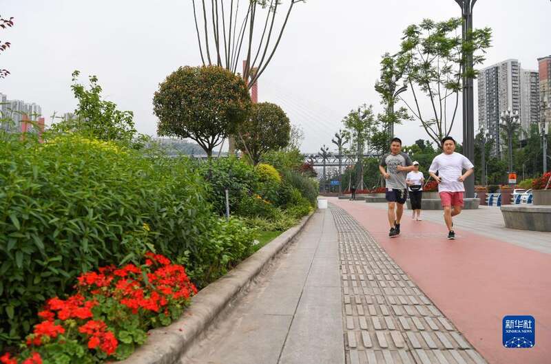 4月29日,市民在重庆市江北区北滨路漫行步道跑步健身。