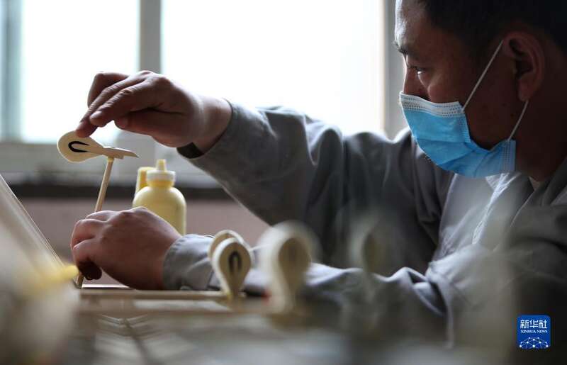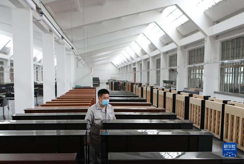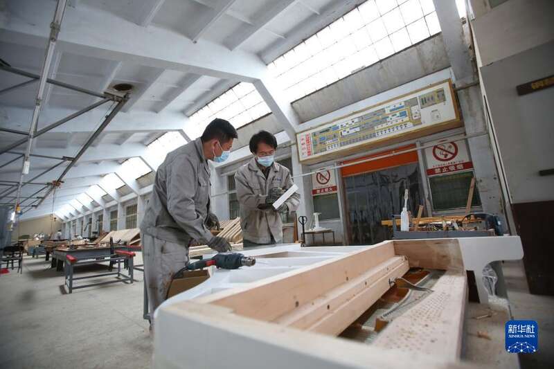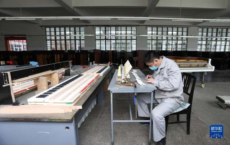 4月26日,刘玉磊在车间内装配钢琴部件。新华社记者 王乙杰 摄
