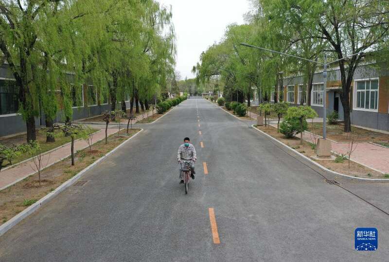4月28日,刘玉磊骑行在厂区(无人机照片)。新华社记者 姚剑锋 摄