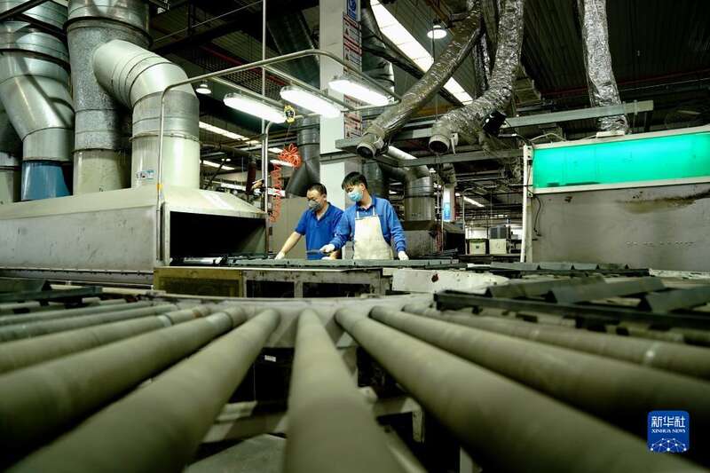 4月29日,上海加冷松芝汽车空调股份有限公司工人在生产车间忙碌。