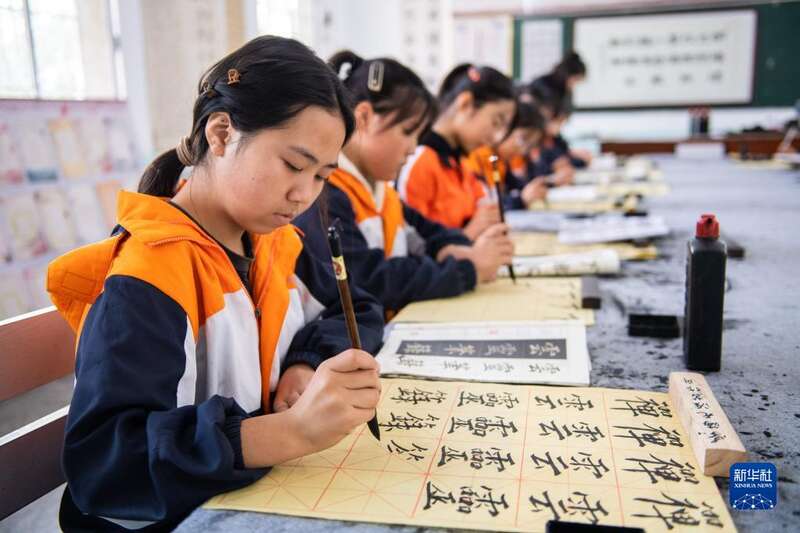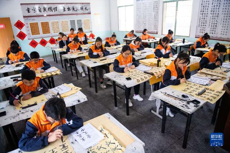 湖南省常德市安乡县安丰乡出口洲中学落实“双减”政策,以打造“翰墨校园”为目标,将传统文化引进课堂,积极开展书法教育, 提高学生的综合素质。据了解,2021年11月,该校被教育部认定为第三批全国中小学中华优秀传统文化传承学校。
