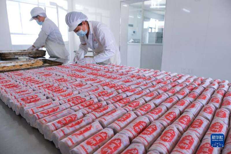 5月3日,工作人员在塘栖镇一传统糕点厂内制作“立夏饼”。
